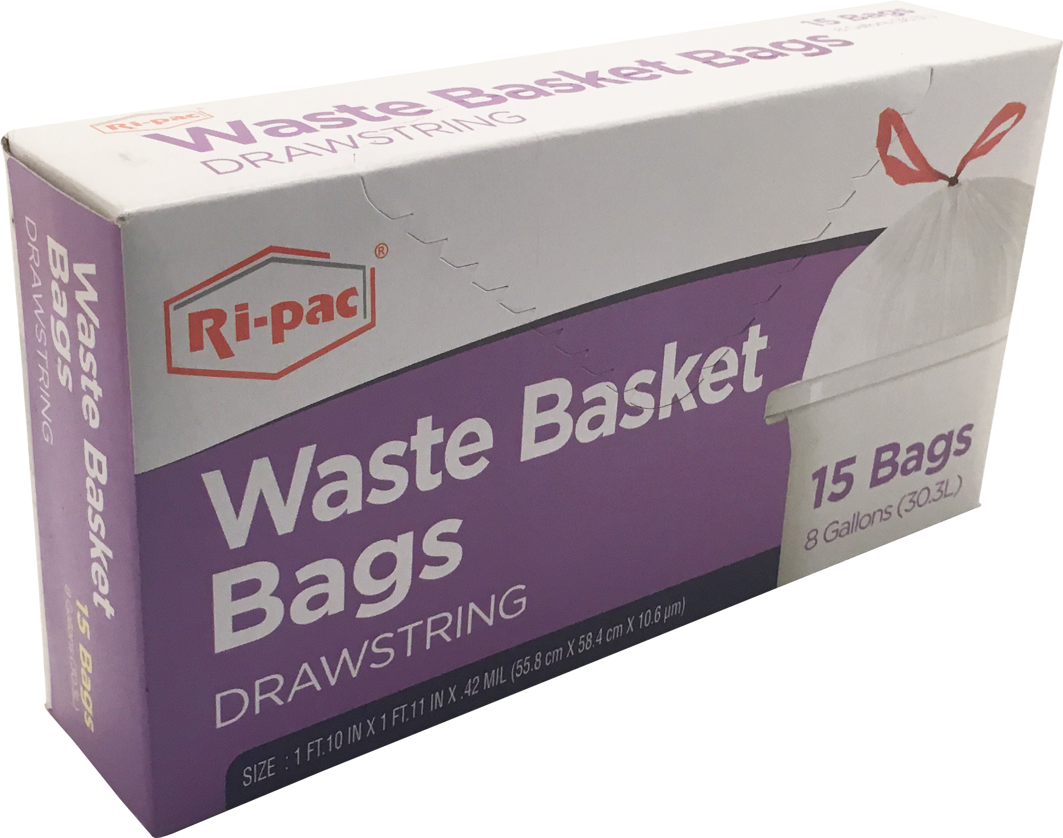 1 Case of 8 Gallon Drawstring Waste Basket Bags, 15 Count, 24 Boxes/Case