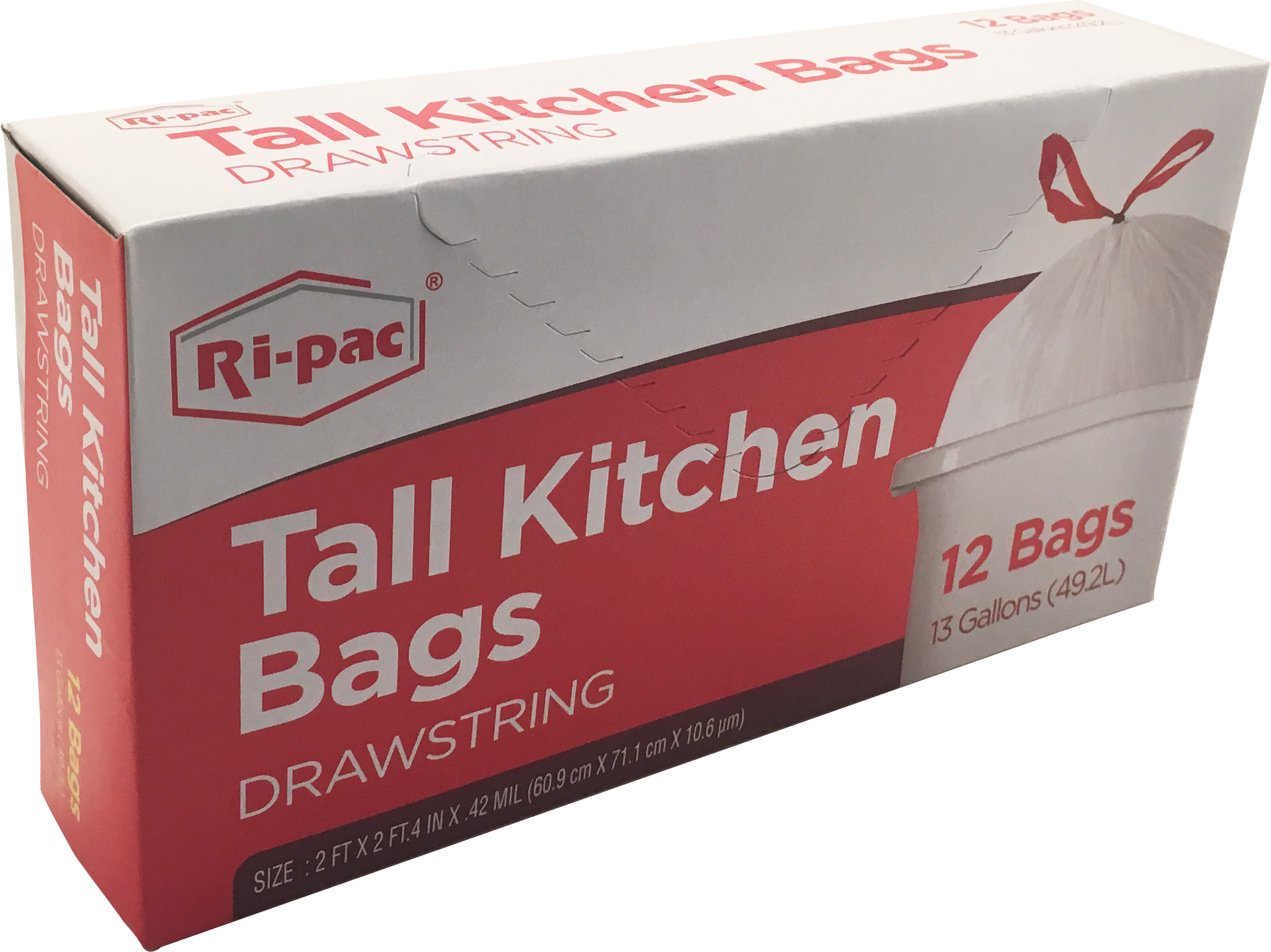 1 Case of 13 Gallon Drawstring Kitchen Bags, 12 Count, 24 Boxes/Case