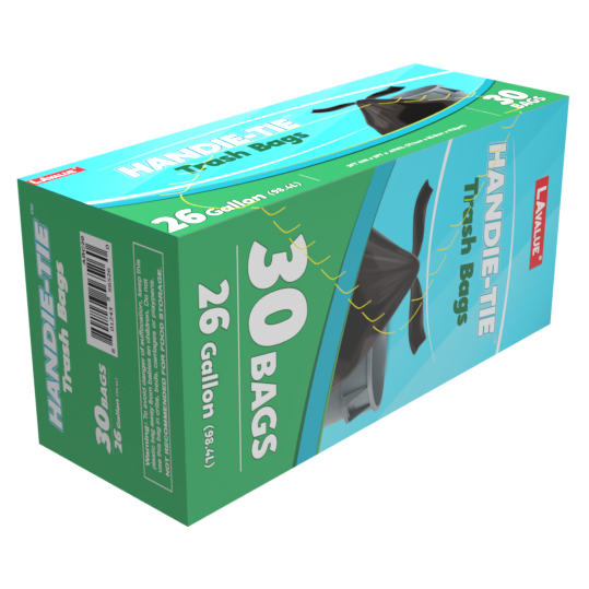 Handie-Tie, Trash Bags, 26gal/30ct, Black