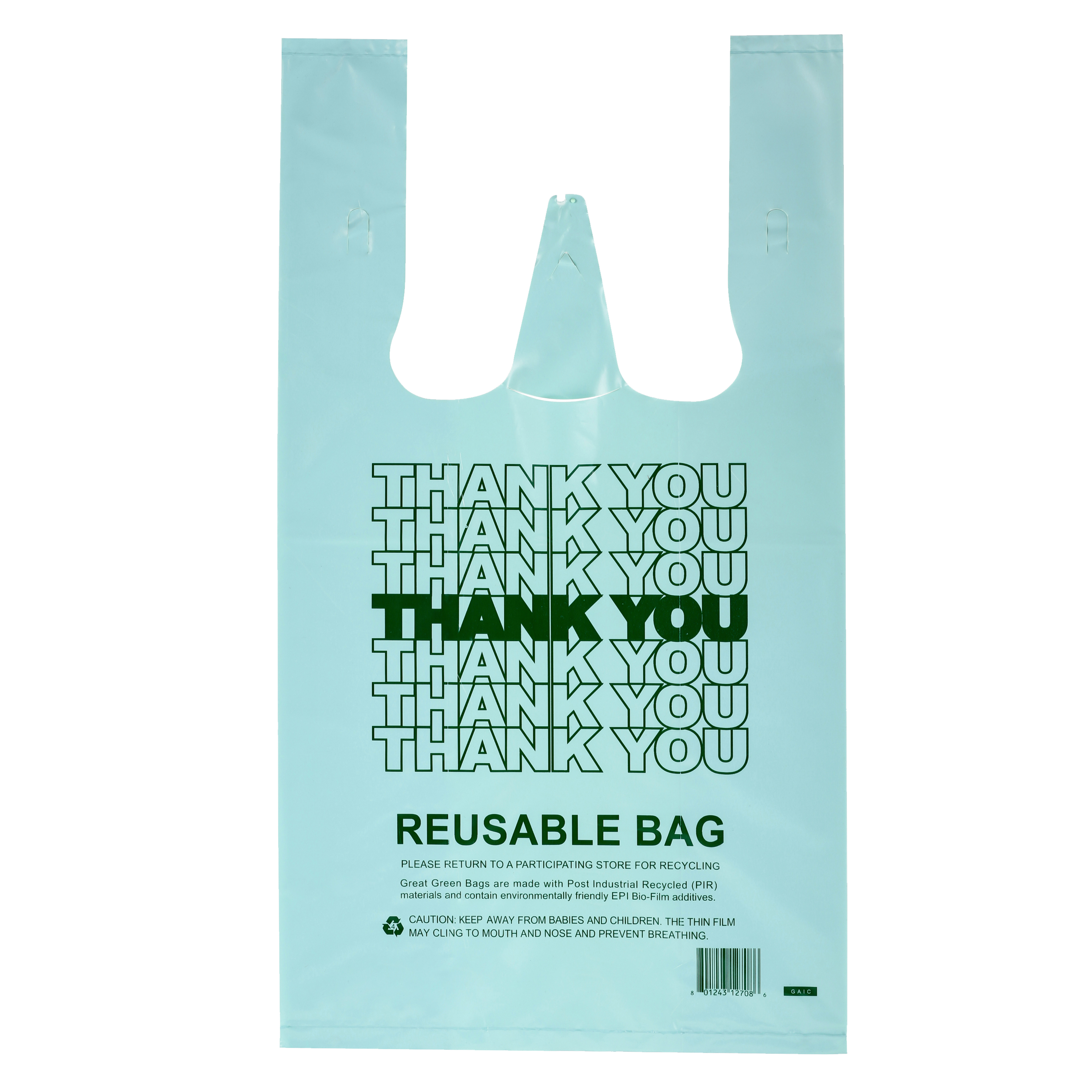 T-Shirt Bag, White, Thank You, 12x7x22″, 2.25mil, Reusable